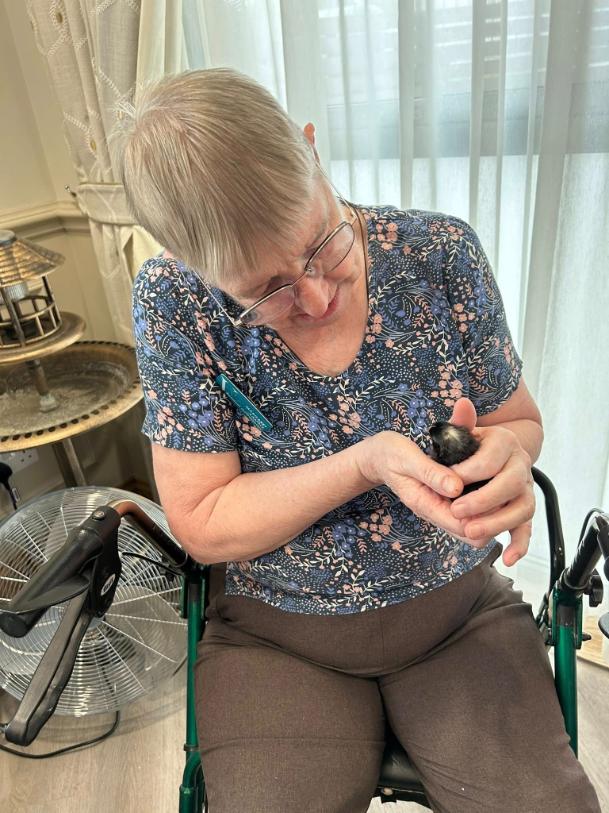 Our chicks hatching offers far more than entertainment. They provide valuable opportunities for connection and sensory engagement. For many residents, particularly those living with dementia, experiences such as these can help trigger fond memories, encourage communication, and create a renewed sense of purpose and wellbeing.